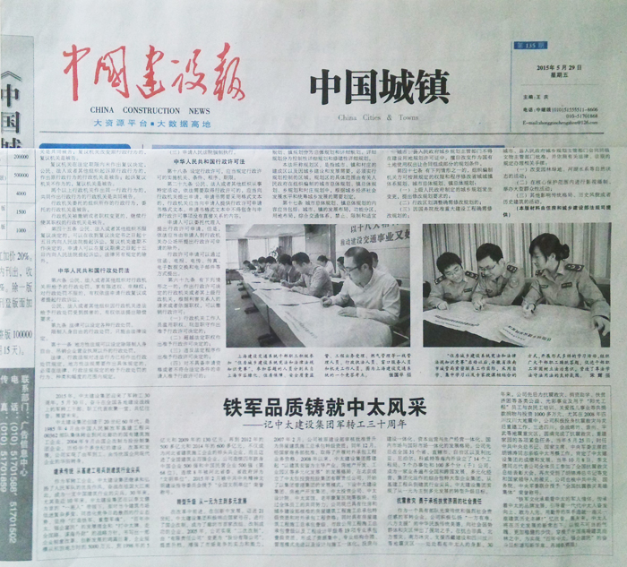 2015年,中太建設(shè)集團迎來了軍轉(zhuǎn)工30周年。5月30日,奮斗在全國各地建設(shè)戰(zhàn)線上的軍轉(zhuǎn)工干部、職工代表歡聚一堂,共憶往昔,展望未來。