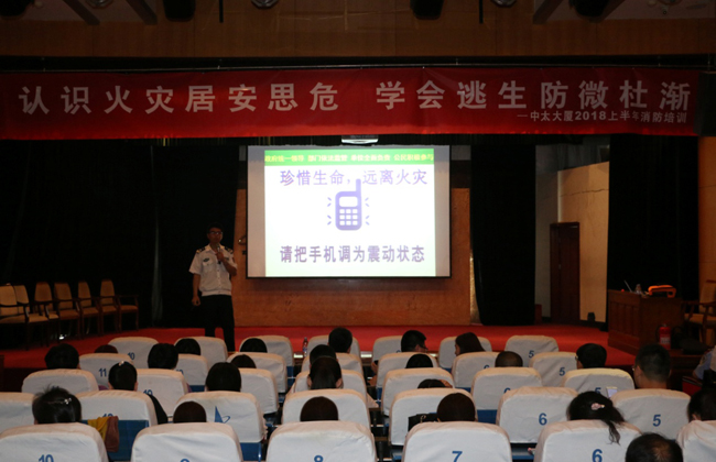 5月25日上午,中太大廈2018年度上半年消防培訓(xùn)在二樓報(bào)告廳舉行,邀請(qǐng)中國(guó)安全健康教育網(wǎng)河北站高級(jí)宣教員程軍老師,為大家?guī)?lái)一場(chǎng)精彩的消防知識(shí)講座。