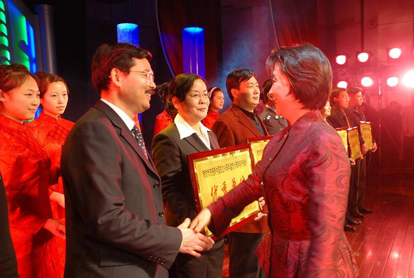 12月30日晚,由市委宣傳部組織的廊坊市紀(jì)念建國60周年建市20周年文化活動表彰大會暨迎新春文藝晚會在武警學(xué)院禮堂舉行。中太建設(shè)集團(tuán)獲優(yōu)秀單位表彰,集團(tuán)工會副主席張娟獲先進(jìn)個(gè)人表彰。隨后,空軍政治部歌舞團(tuán)為1000余名觀眾奉獻(xiàn)了一臺精彩的文藝晚會。市委副書記吳曉琳等市領(lǐng)導(dǎo)為獲獎(jiǎng)單位及個(gè)人頒獎(jiǎng)并觀看了演出。 |