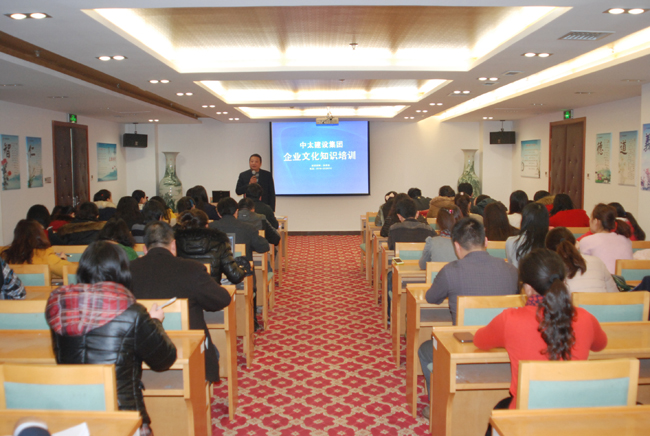 3月7日下午,中太建設集團舉辦企業文化知識培訓。集團企業文化部總經理孫彥池圍繞“1139”發展戰略和“3+7”產業模式,結合《中太建設集團2014企業文化建設指導意見》,深入分析了建筑行業當前形勢,闡述了品牌興企的重要性,號召與會人員與時俱進,緊跟時代發展步伐,以超前的眼光和銳意進取的精神開展企業文化工作,推進集團公司各項事業快速健康發展。同時他強調,各單位要嚴格按照《視覺識別系統標準》布置項目工地,確保中太全國項目工地標準一體化,促進中太企業文化建設的規范化和標準化。