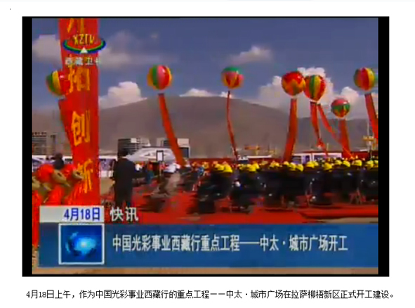 西藏電視臺報道中太建設集團投資建設的中太·城市廣場正式開工建設