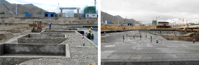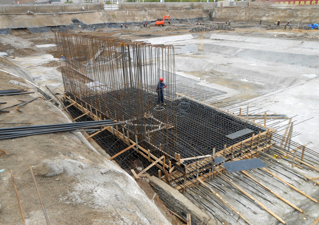 中太建設(shè)集團第十一工程局自4月份成立項目部以來,進行了大量精心的前期準(zhǔn)備工作,包括員工生活區(qū)的搭建、施工隊伍的調(diào)度組織、工程設(shè)計圖紙的優(yōu)化落實、施工區(qū)外圍廣告墻的設(shè)計制作及安裝等。截至9月中旬,降水工程已開始全面降水、樁基工程也已全部施工完成,特別是4#-11#樓已完成獨立基礎(chǔ)和筏形基礎(chǔ)的土方開挖,其中4#-7#樓的混凝土墊層已澆筑、獨立基礎(chǔ)的磚胎膜正在砌筑。地下室防水工程也已開始施工,其中4#樓防水已大面積完成,6#、7#塔吊基礎(chǔ)已完成鋼筋綁扎,1#樓獨立基礎(chǔ)土方已開挖并已完成90%工程進度。