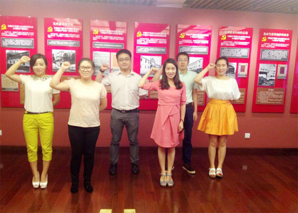 推開那扇厚重的石庫門老房子的房門,仿佛回到了過去那個戰(zhàn)火硝煙的年代。在講解員的認(rèn)真解說下,員工們共同重溫了中國共產(chǎn)黨的發(fā)展歷程,領(lǐng)略了建黨的艱辛與危險,更加體會到如今的勝利成果是有多么來之不易。滿眼的珍貴影像、圖文和實物資料,令員工們大開眼界并不由得心潮澎湃。面對那份業(yè)已發(fā)黃但卻對于中國革命具有重要意義的《中國共產(chǎn)黨宣言》,員工們駐足之前,領(lǐng)會著革命的艱辛,感受著革命黨人誓要建立偉大新中國的澎湃熱血和堅定不移的信念。一行人不約而同地在榮譽(yù)室前莊嚴(yán)宣誓:“珍惜當(dāng)下,努力奮斗!”